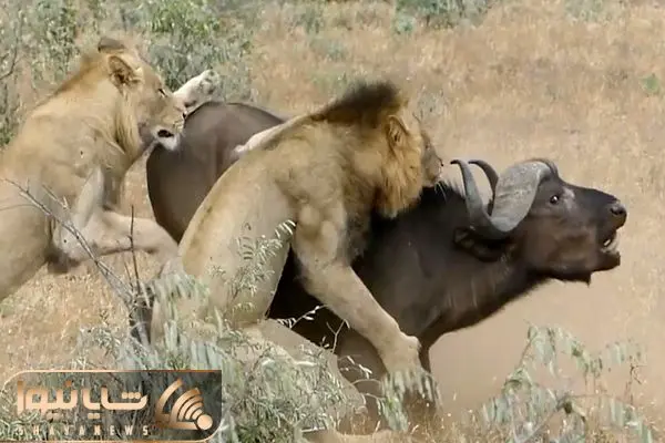 از جذابیت های حیات وحش؛ صحنه دلخراش دست و پا زدن بچه بوفالو در محاصره شیر ها
