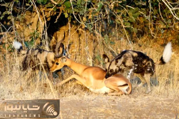 از جذابیت های حیات وحش؛ سگ های وحشی ای که بچه ایمپالا رو از شکم مادرش کشیدن بیرون