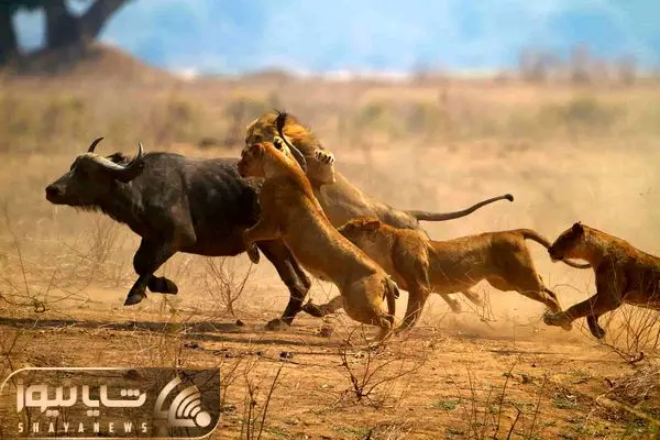 از جذابیت های حیات وحش؛ شیر ها داشتن بوفالو و میخوردن که یهو دعواشون شد اونم فلنگو بست