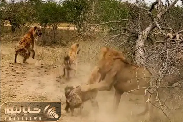 از جذابیت های حیات وحش؛ کفتار خوش شانسی که با زرنگی رفقاش تونست از دست شیر فرار کنه