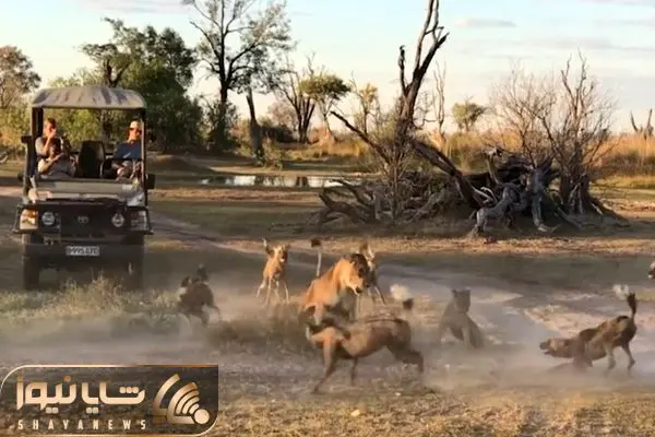 از جذابیت های حیات وحش؛ سگ های وحشی شیر رو دوره کردن اونم هاج و واج مونده