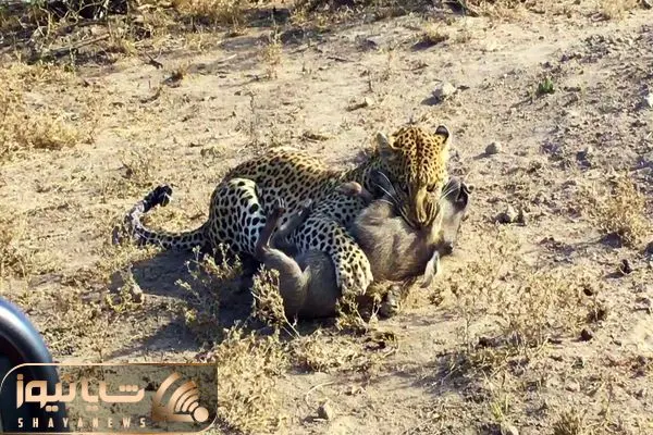 از جذابیت های حیات وحش؛ پلنگی که به زور گراز درشت هیکلو از تو لونش کشید بیرون