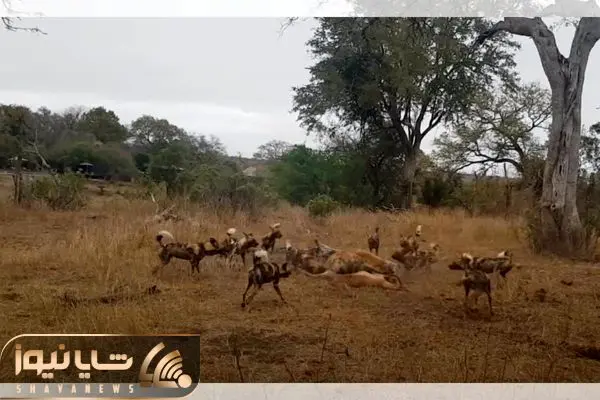از جذابیت های حیات وحش؛ زجرکش شدن ایمپالا که افتاد به دام پلنگ، سگ های وحشی و کفتار ها