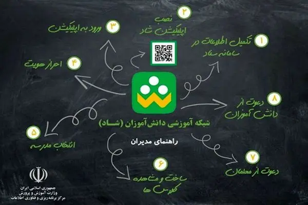 مرحله هشتم : پس از اتمام ثبت نام معلمان ، در تاریخ اعلام شده در شیوه نامه ارسالی وزارت آموزش و پرورش ، دانش آموزان مدرسه خود را به عضویت در اپلیکیشن شاد دعوت کنید .