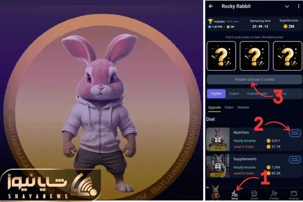 برای وارد کردن کد انیگما راکی رابیت کافی است وارد بخش Mine و قسمت Enigma شده و با کشیدن هر کلمه آن را طبق راهنمای بالا در جای درست قرار دهید. در نهایت روی دکمه Show زده و جایزه خود را Claim کنید. توجه داشته باشید که فقط ۳ بار برای وارد کردن این کد فرصت دارید و اگر هر سه بار ترتیب کلمات را اشتباه وارد کنید، دیگر امکان دریافت جایزه این بخش را تا روز بعد نخواهید داشت.