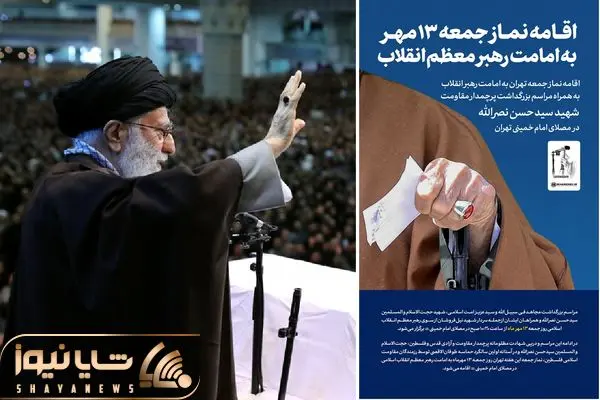 مراسم بزرگداشت سید مقاومت و نماز جمعه این هفته جمعه 13 مهر به امامت رهبر معظم انقلاب در مصلای امام خمینی (ره) برگزار می شود.