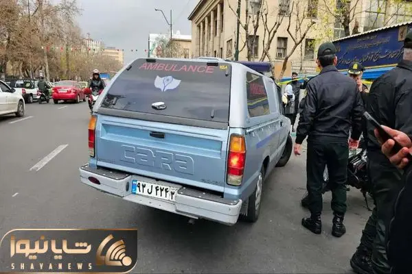 ۳ آمبولانس متعلق به بهشت زهرا برای انتقال جسد شهدا و قاتل داخل حیاط پشتی دیوان مستقر شدهاند.