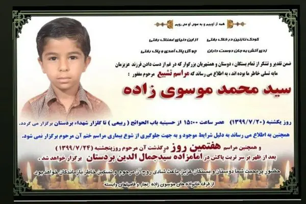 خودکشی سید محمد موسوی زاده دانش آموزی ۱۱ ساله بوشهری احساسات مردم را جریحه دار کرد. این دانش آموز بوشهری در بندر دیّر خودکشی کرده است آن هم با طناب دار؛ هنوز علت دقیق آن اعلام نشده اما هر چه که بوده احساسات مردم را جریحه دار کرده تا آنجا که معلم سید محمد دل نوشته ای برای او پس از این واقعه تلخ منتشر کرده و در آخر هم نوشته؛ "برای شاگردم که هیچوقت ندیدمش اما شاگردم بود"…