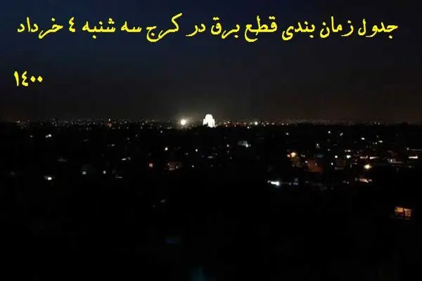 جدول ساعات قطع برق مناطق مختلف کرج سه شنبه 4 خرداد 1400