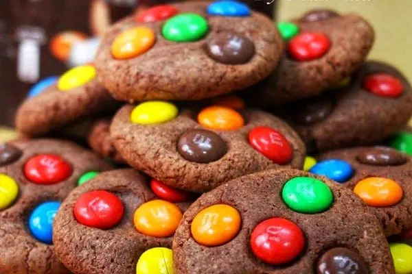 13- حالا می توانید برای جذاب شدن بیشتر کوکی ها، چند شکلات رنگی ام اند امز و چیپس شکلات روی کوکی ها اضافه کنید.