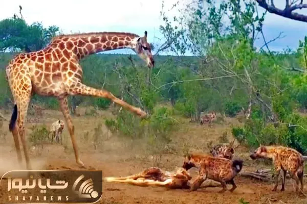 از جذابیت های حیات وحش؛ از خودگذشتگی زرافه مقابل لاشخورهایی که به جان فرزندش افتادند!