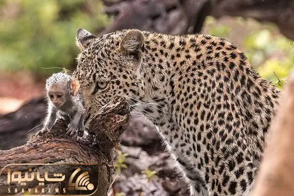 از جذابیت های حیات وحش؛ بچه میمون بخت برگشته در دهان پلنگ هم مادر را محکم بغل گرفت!