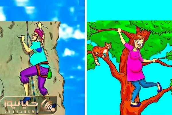 کار هر دو در زمان بارداری کاملا اشتباه است. اما کار زن سمت راست احمقانه تر است. او در حال تلاش برای نجات گربه است، در حالی که گربه تصویر یک گربه کاملا بالغ است . لذا او هیچ مشکلی در بالا رفتن و پائین رفتن از درخت ندارد. به این ترتیب نیازی هم ندارد که نجات داده شود. زن سمت چپ اگر چه در حال صخره نوردی است اما با تجهیزات کامل در حال انجام این کار است. هر چند فعالیت او ممکن است برای بچه خطرناک باشد.
