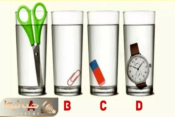تو این چهار لیوان چهار شی مختلف قرار داده شده و سطح آب بالا اومده حالا شما بگید قبل از اینکه این اشیا روبگذاریم تو آب کدوم لیوان پر تر بود؟