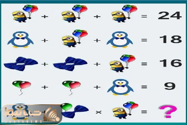 نکات ؛ در ردیف آخر مینیون دارای ۳ بادکنک میباشد و پنگوئن نیز بدون پاپیون است و همچنین اولویت با عمل ضرب میباشد !