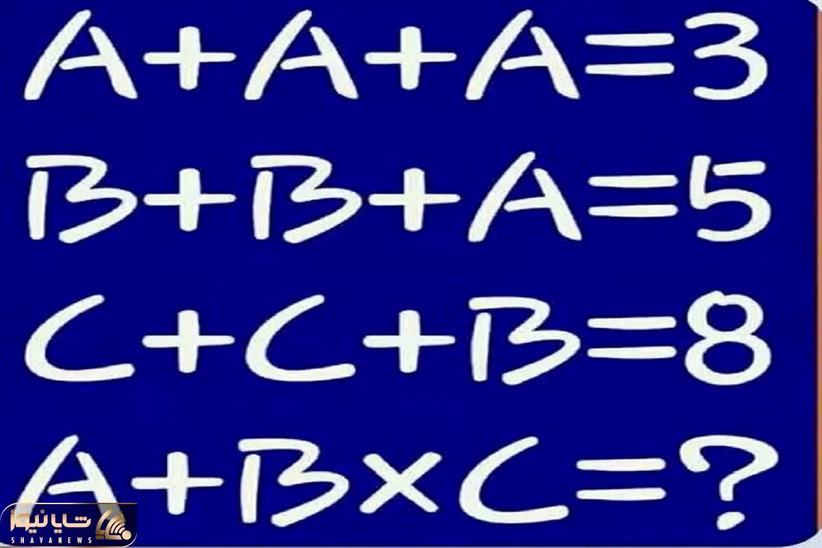 شایانیوز- تست هوش ریاضی معادله حروف انگلیسی: سوال این آزمون ساده است: شما چند معادله مختلف را مشاهده می کنید، شما باید با توجه به نمونه های داده شده و فرمول پنهانی در معادله ها جواب نهایی را تشخیص دهید؟ دلیل خود را بگوئید. برای رمزگشایی این آزمون فقط 10 ثانیه فرصت دارید.