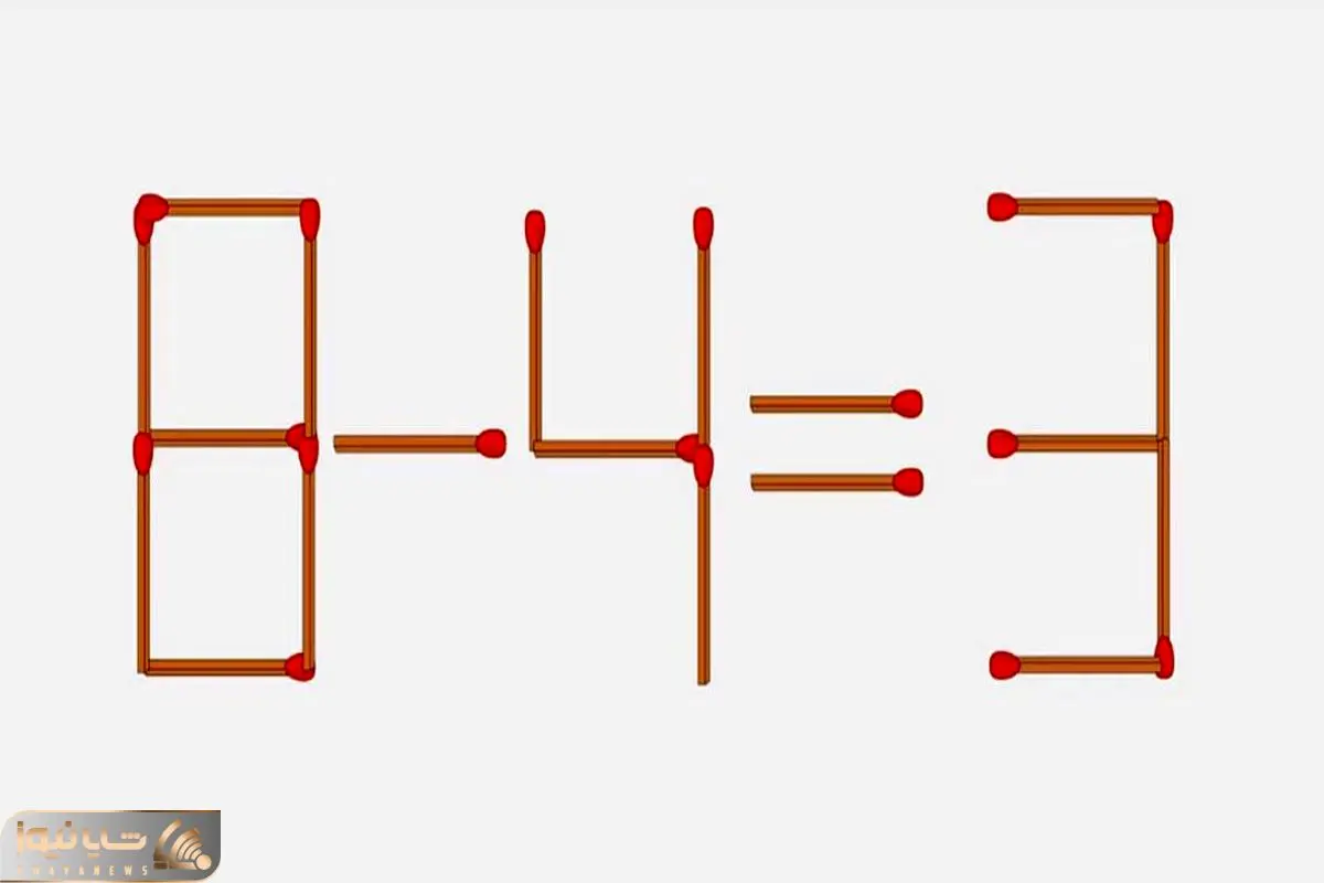 اگر باهوش هستید تنها با جابجایی دو چوب کبریت معادله ۳=۴-۸ را درست کنید.