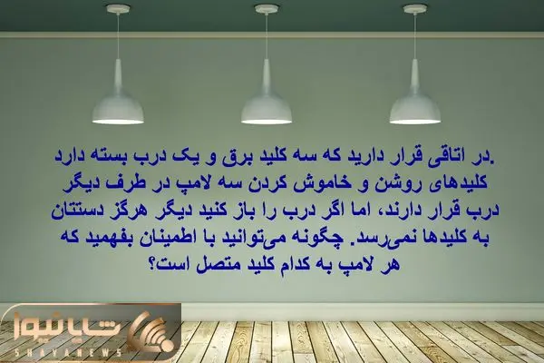 شایانیوز_ در اتاقی قرار دارید که سه کلید برق و یک درب بسته دارد. کلیدهای روشن و خاموش کردن سه لامپ در طرف دیگر درب قرار دارند، اما اگر درب را باز کنید دیگر هرگز دستتان به کلیدها نمیرسد. چگونه میتوانید با اطمینان بفهمید که هر لامپ به کدام کلید متصل است؟ اگر سریع هستید و از استدلال منطقی برای نتیجهگیری استفاده میکنید جواب این معما را بدهید.