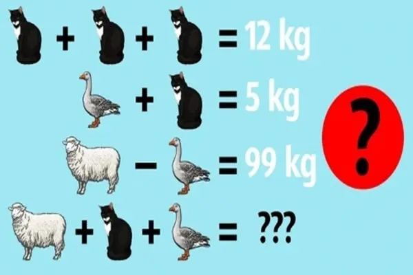 پاسخ معمای ریاضی با مجموع وزن حیوانات