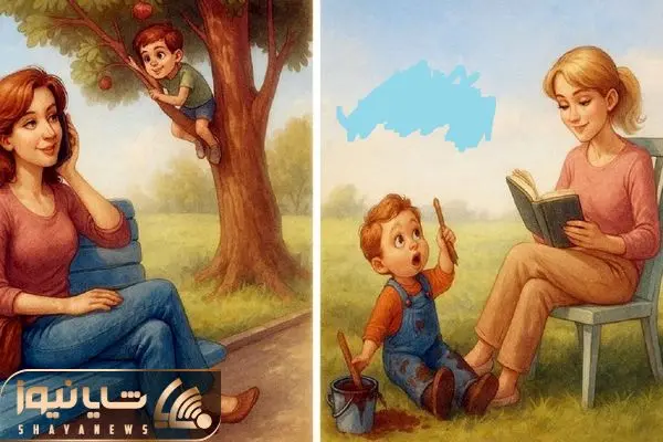شایانیوز_ همان طور که می بینید سوال تصویری با مادر بی خیال از دو تصویر متفاوت تشکیل شده است. در هر تصویر یک کودک و مادر دیده می شود. در هر دو تصویر، کودکان مشغول بازیگوشی هستند و هر دو مادر نیز مشغول کاری است. مادر سمت راست در حال کتاب خواندن و مادر سمت چپی در حال گفتگوی تلفنی است.