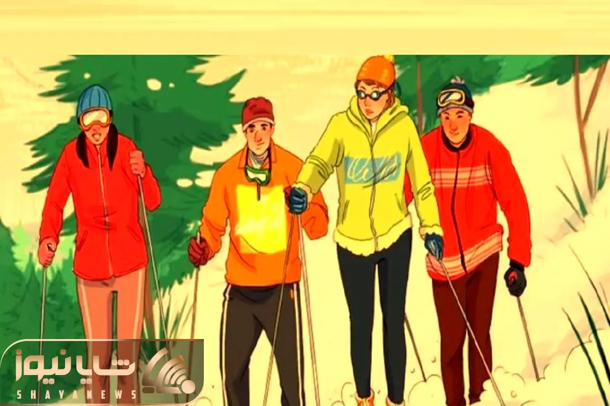 توی برف هستن ولی درخت ها آثاری از برف ندارن