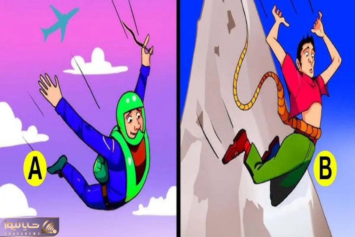 جواب: اونی که از کوه افتاده هنوز با طناب وصله و امید به نجاتش هست ولی اونی که از هواپیما پریده چترش باز نشده و امکان مردنش بیشتره.
