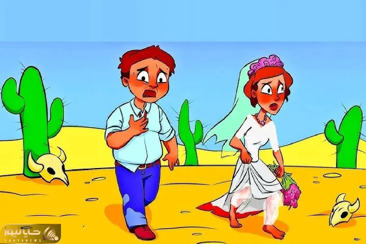 جواب: زن زودتر میمیره چون کفش نداره و تعریق بیشتری خواهد داشت و در نتیجه زودتر تشنه اش میشه.