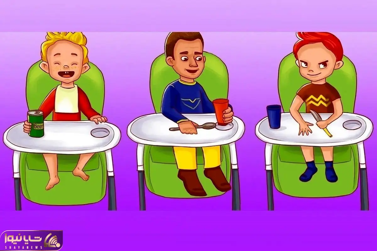 جواب: اونی که وسط نشسته بچه نیست چون هم پاهاش و سایز کفشش گنده اس و هم چهره اش بچگونه نیست.