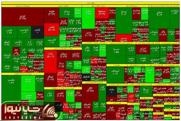 در فرابورس نیز نمادهای «کگهر»، «تجلی» و «پخش» بیشترین تأثیر کاهنده را بر شاخص کل فرابورس داشتند و «آریا»، «غصینو» و «زاگرس» بیشترین تأثیر مثبت را بر شاخص داشتند.