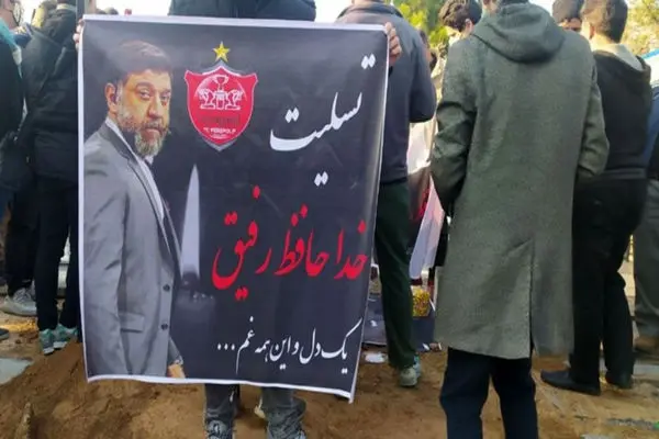 در هنگام خاک سپاری، علیرضا منصوریان پیشکسوت فوتبال ایران و سرمربی سابق استقلال، مقداری تربت کربلا را در قبر و روی کفن وی قرار دارد.
