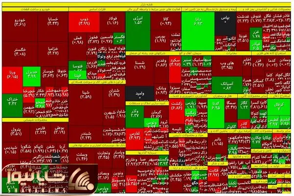 سهام فولاد، شپنا، فملی، شستا، فارس، شبندر و… نیز به ترتیب بیشترین تاثیر منفی روی شاخص را به ثبت رساندند. نمادهای شستا، خساپا، خودرو، شپنا، خگستر و… نیز پرتراکم ترین سهمهای روز یکشنبه در بورس تهران بودند.