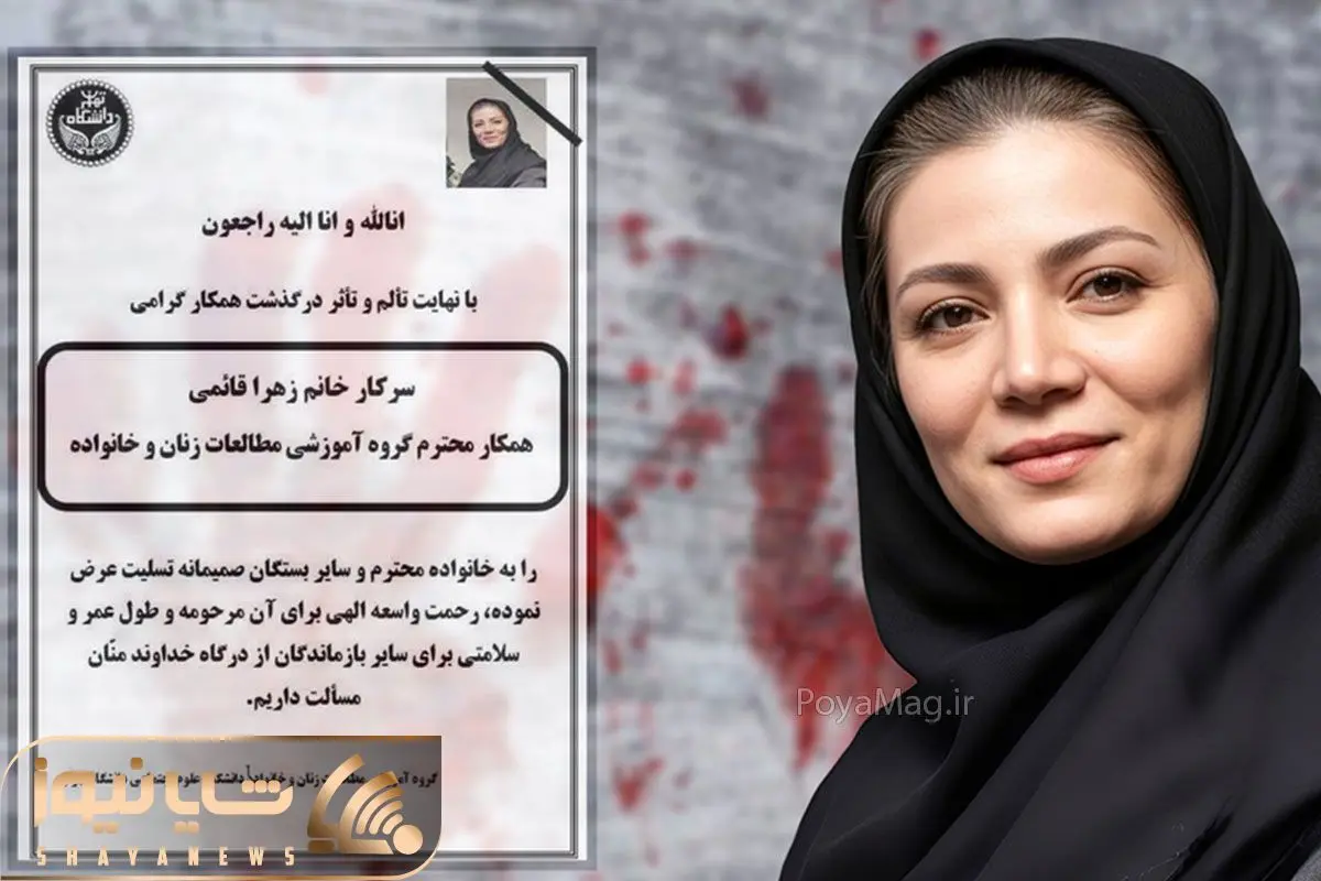 زهرا قائمی کارمند دانشکده علوم خانواده دانشگاه تهران به دست همسرش به قتل رسید.