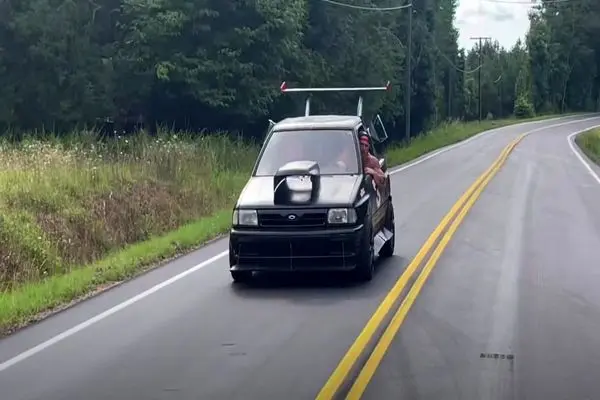 چون تمام رانندههای حرفهای میدانند که برای افزایش ورود هوا به موتور به یک هواکش کاپوت نیاز است، او قسمت بالایی ماشین چمنزنی خودش را به جای هواکش روی کاپوت این پراید تیون شده قرار داده است. او حتی یک آرم شورولت روی جلوپنجره قرار داده تا این پکیج جذاب را تکمیل کند.