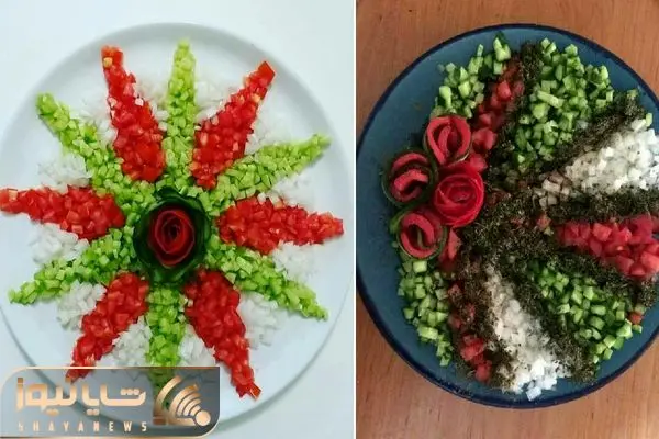 سالاد ها علاوه بر اینکه خیلی خوشمزه و خوش آب و رنگ هستند اگه با کمی خلاقیت بتونید دیزاینشون کنید باعث جذابیت سفره هم میشن.
