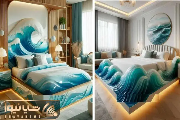 تختی برای عاشقان دریا / چیدمان مسحور کننده تخت خواب بر اساس امواج اقیانوس