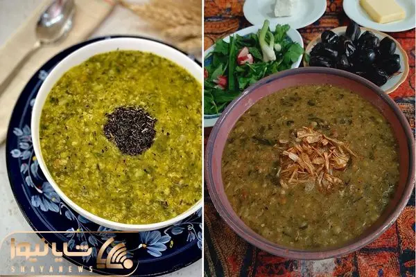 -سبزی آش برنج شامل جعفری، گشنیز و نعناست.