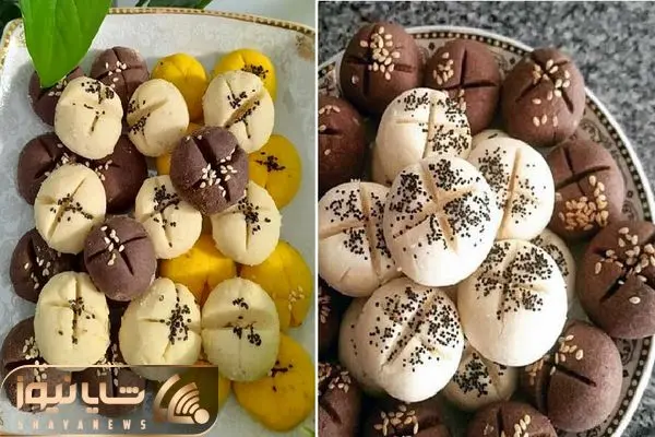 فر رو با دمای ۱۶۰ درجه روشن کنید تا داغ بشه. بعد از استراحت خمیر، از مواد خمیر به اندازه یک فندق بردارید، داخل دستتون گرد کنید و در سینی فر بچینید. می تونید روی شیرینی ها رو با چاقو خطوطی ایجاد کنید و یا به صورت ساده نگه دارید. برای روی شیرینی های زعفرانی و ساده هم مقداری تخم خرفه بپاشید و برای شیرینی های کاکائویی هم می تونید پودر پسته یا کنجد بپاشید.