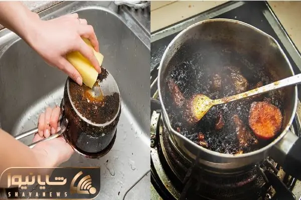 این روش برای قابلمه هایی که کف آنها کاملاً سوخته است، بسیار مؤثر است.