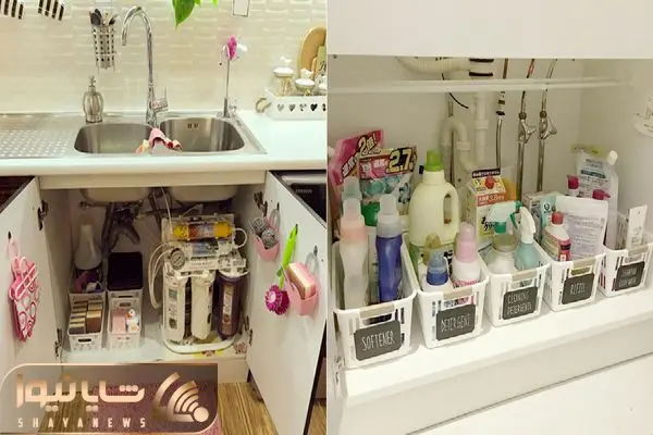چطور کابینت زیر ظرفشویی را به فضایی کاربردی تبدیل کنیم؟/ ترفند مرتب کردن زیر سینک