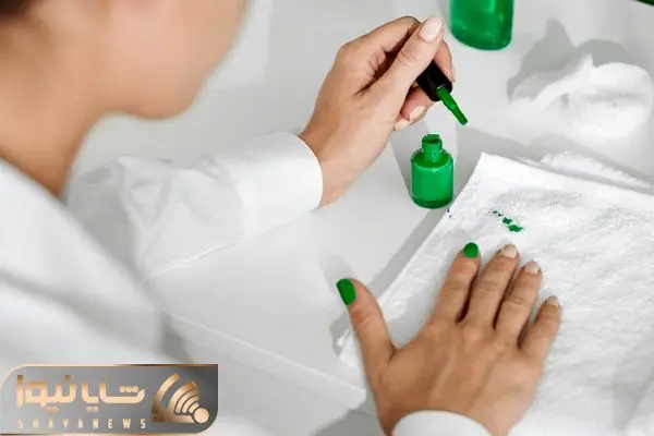 هنگام لاک زدن ناخن، از حوله یا دستمال قدیمی روی لباس سفید استفاده کنید.