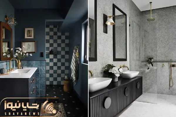 اگر دنبال یه رنگ جسورانه تر و خاص تر هستید که همزمان با مدرن بودن و حس آرامش و عمق رو منتقل کنه بی شک بهترین انتخابتون برای این منظور آبی نفتی یا سرمه ای خواهد بود چون این رنگ خیلی شیک و جدی هست مخصوصا وقتی روی دیوارها یا بخشی از دیوارها استفاده بشه به فضای دستشویی شخصیت میده.