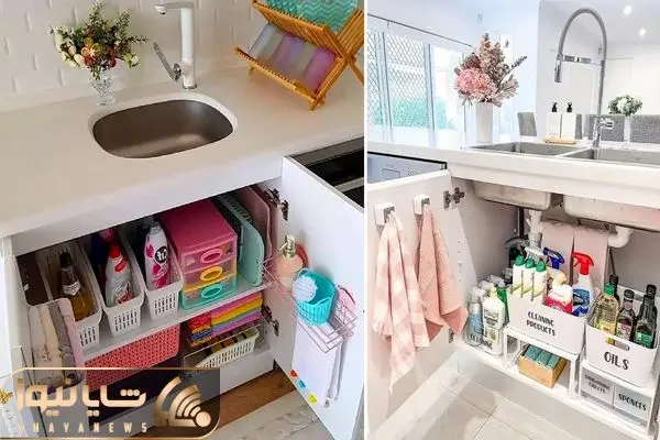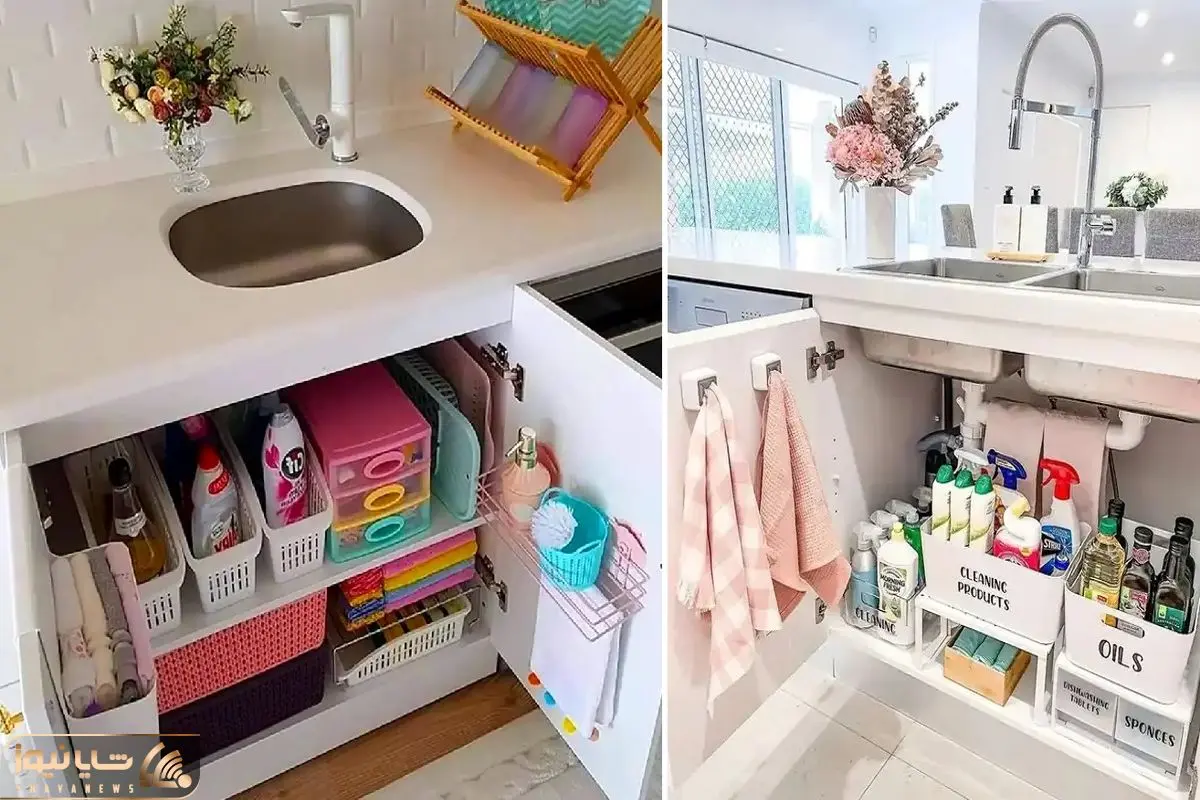 برای نظم دهی فضا زیر سینک کمی هم خلاقیت داشته باشید