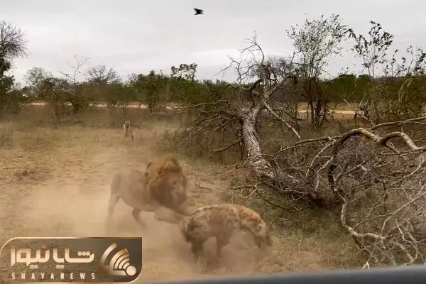 شیر نر عصبانی جلوی گردشگرا کله کفتاری رو که جیغ می زد و سر و صدا راه انداخته بود رو می گیره و بعد بهش حمله می کنه