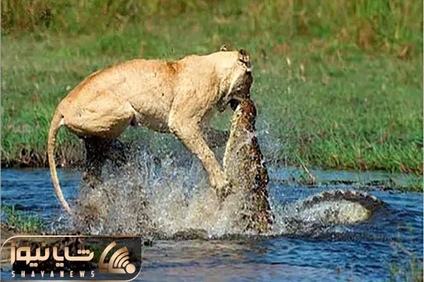 از جذابیت های حیات وحش؛ وقتی شیرها از فرط گرسنگی میوفتن به خوردن کروکودیل زمخت