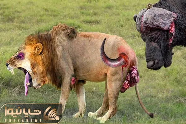 از جذابیت های حیات وحش؛ وقتی گاومیش با شاخ های تیزش شیر رو سوراخ سوراخ میکنه