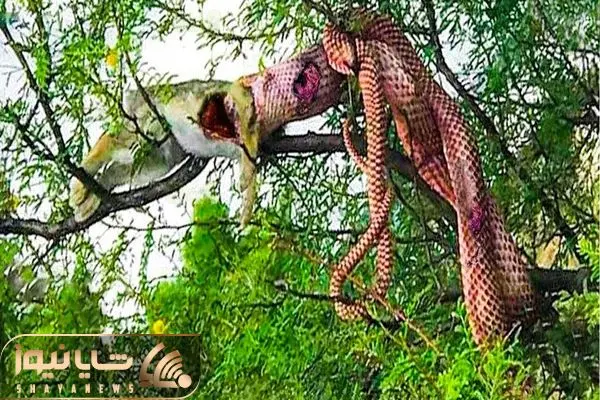 از جذابیت های حیات وحش؛ مار پیتون به درشتی تنه درخت بالای دار پلنگ رو می بلعد