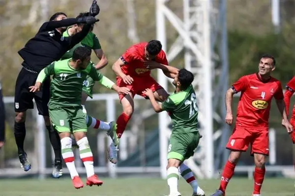 * پرسپولیسیها با لباس یکدست قرمز و تیم امید هم با لباس سبز وارد زمین شدند.