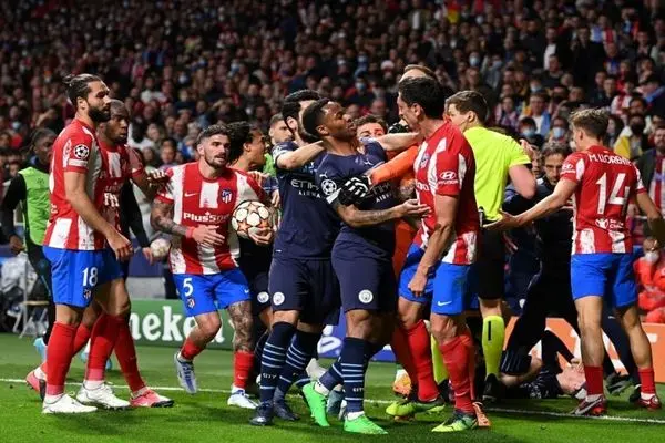 دیدار اتلتیکومادرید و منچسترسیتی در دقایق پایانی به شدت به خشونت کشیده شد.