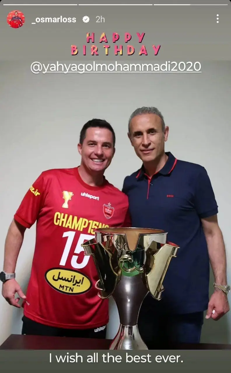 به گزارش «شایانیوز» و به نقل از طرفداری؛ اوسمار پس از برتری پرسپولیس برابر پیکان، با انتشار یک استوری اینستاگرامی، تولد یحیی گل محمدی را تبریک گفت تا نشان دهد رفتن یحیی از پرسپولیس، هیچ تاثیری در رابطه او با گل محمدی نداشته است.