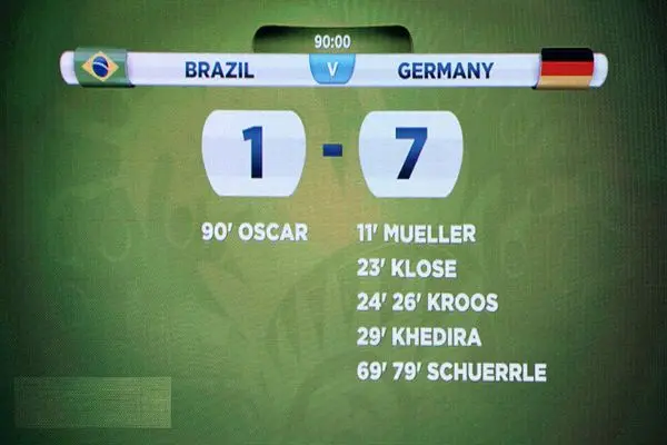 ۱. برزیل یک - آلمان ۷ (جام جهانی ۲۰۱۴)